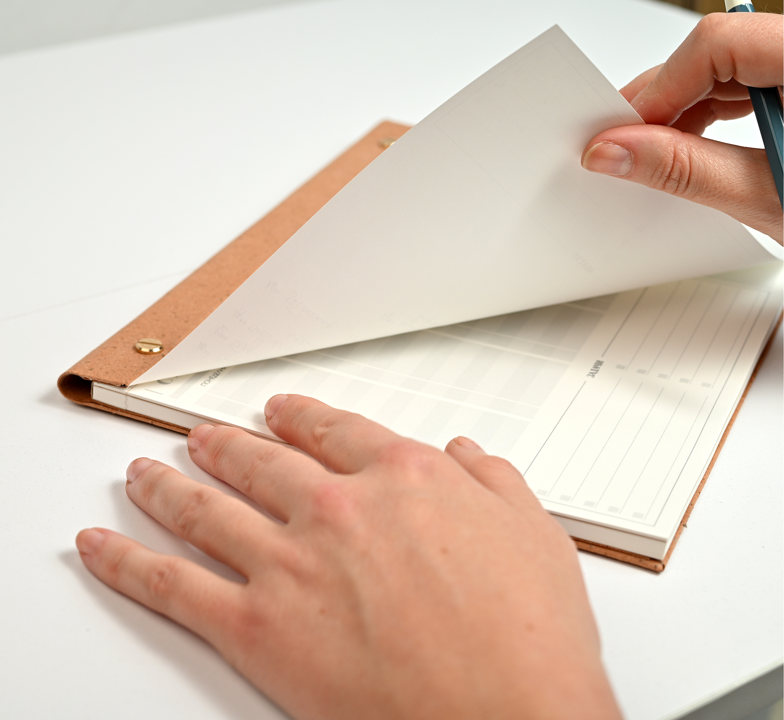 Можеш да подмениш лесно книжното тяло като развиеш нитовете, поставиш новото тяло и завиеш обратно. Избери сам своя пълнител, за да го персонализираш спрямо нуждите си: